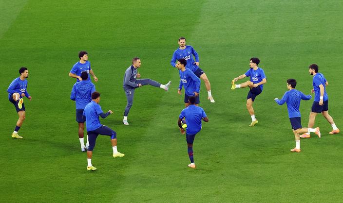 Les deux équipes pénètrent sur la pelouse du Stade Ahmad-ben-Ali. Les tribunes ne sont pas encore pleines, mais les supporters parisiens présent font du bruit.